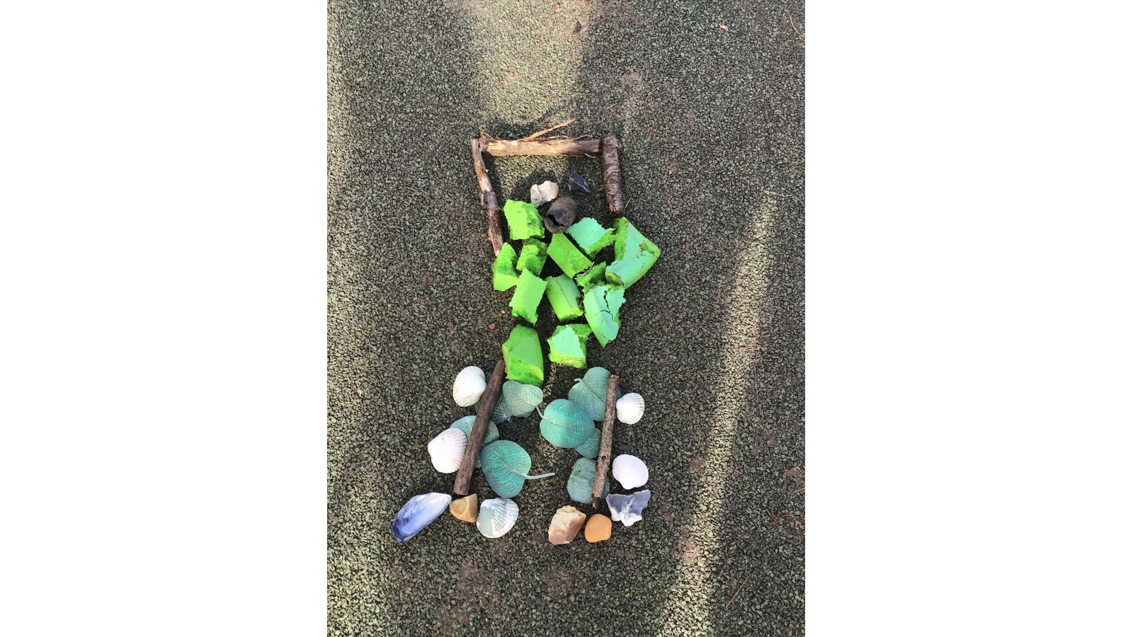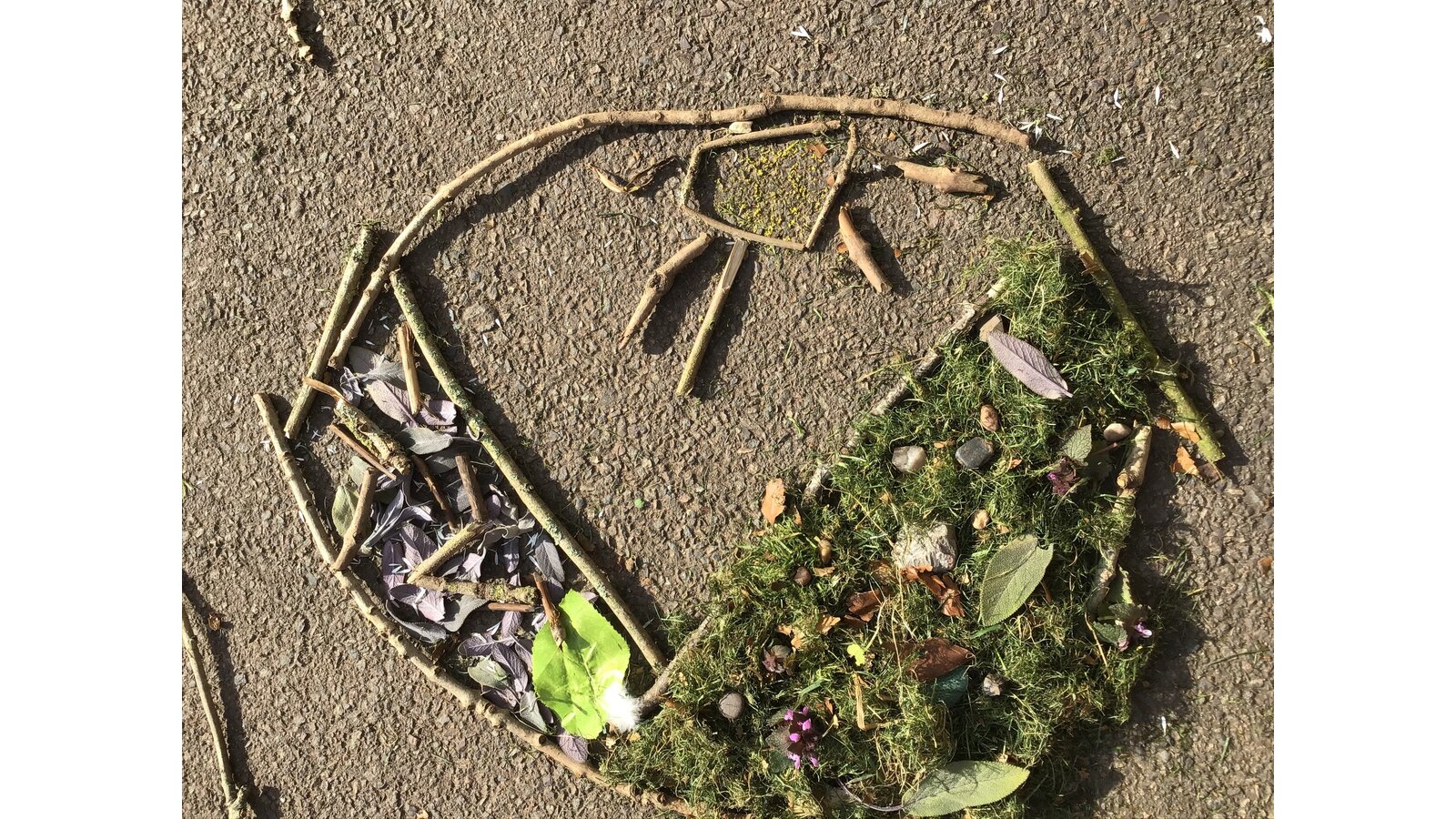 The children enjoyed the sunshine today and went outside to explore the world around them. They used found materials to create various pictures, patterns and sculptures. They learnt that they might not have an initial plan, but can develop an idea overtime as they continue to experiment with and explore different compositions.