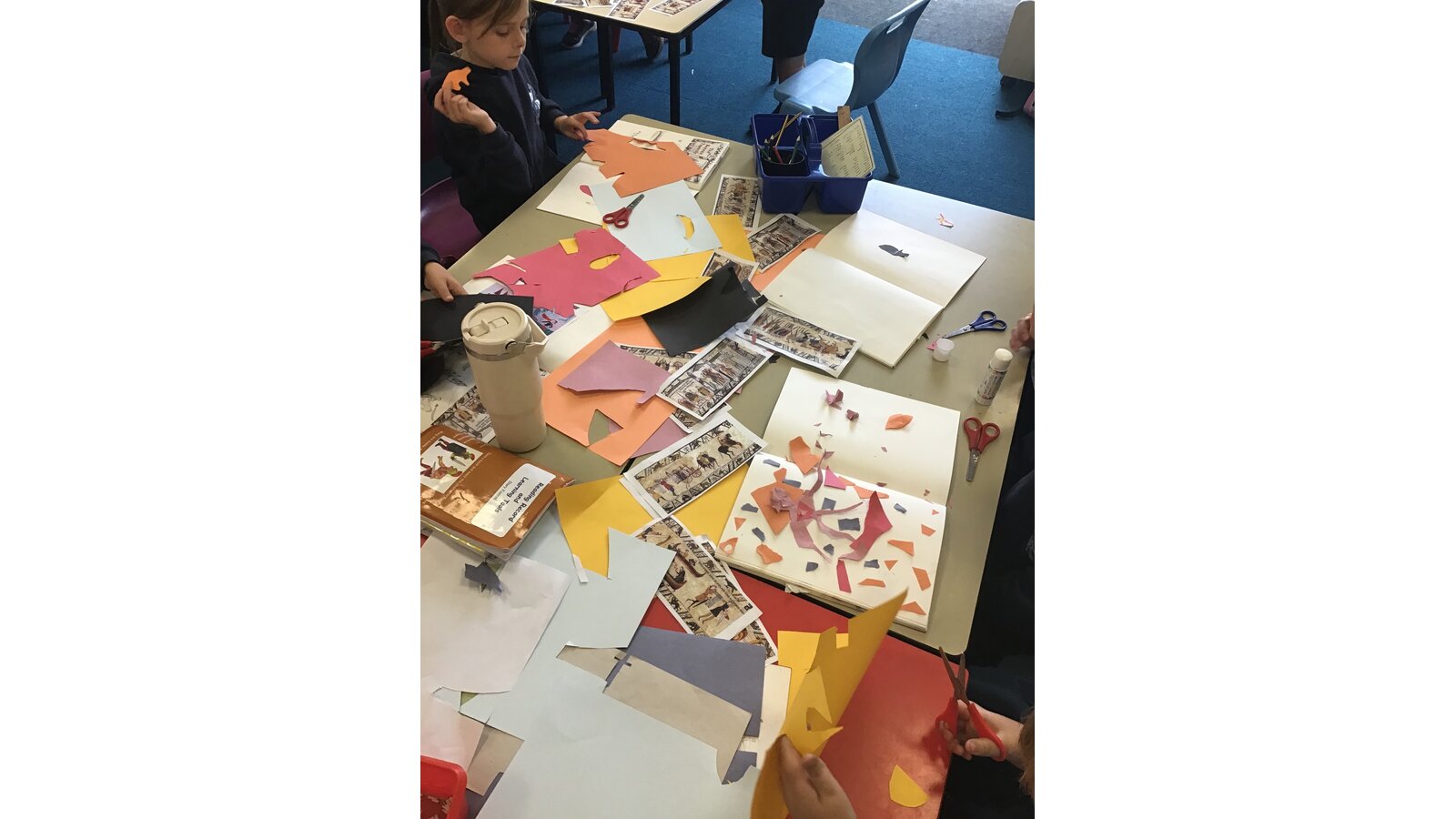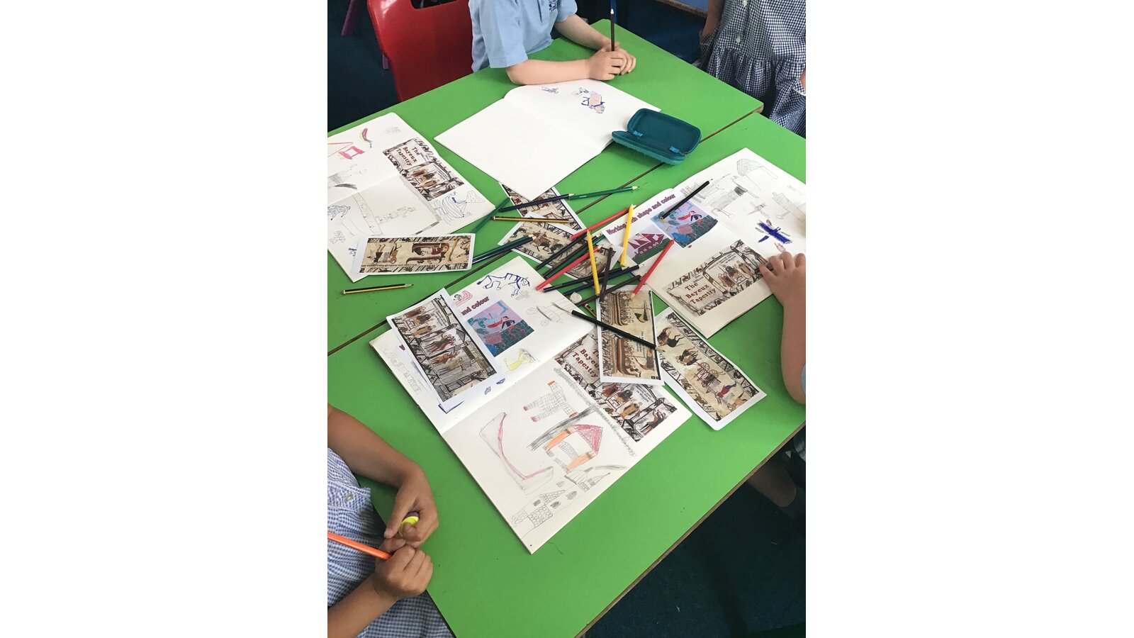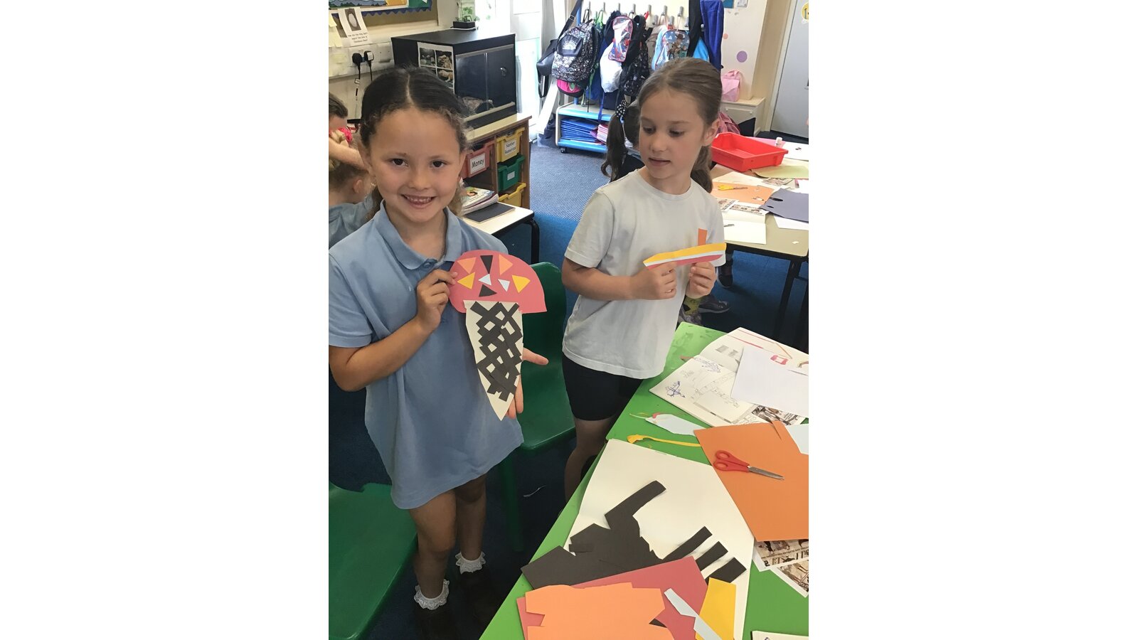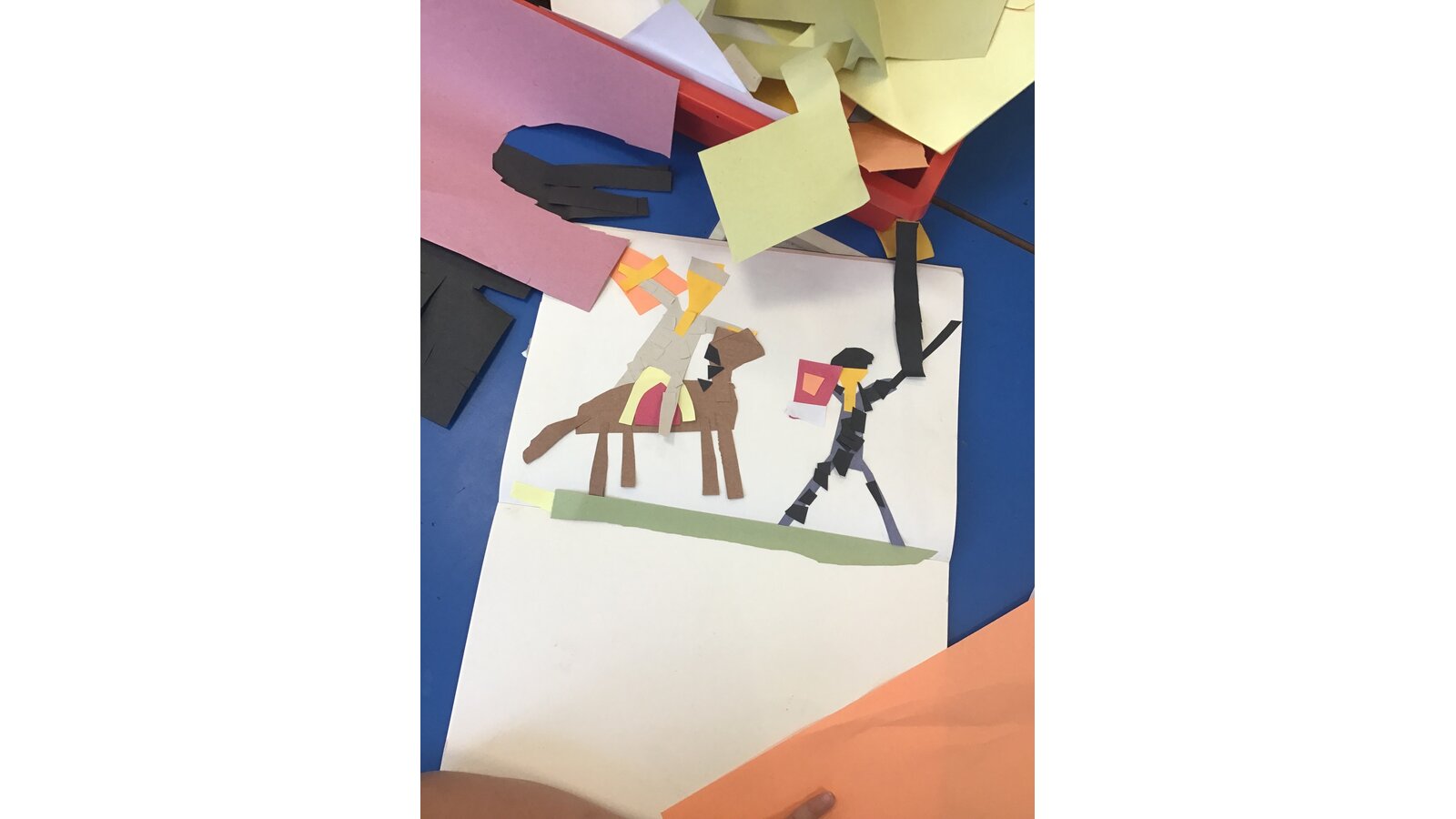 Class 2 have had a great time during art week! We have looked closely at the Bayeux Tapestry taking note of different patterns, colour, lines and shapes. We then looked at the artist Henri Matisse and his ‘cut-outs’ period. This inspired us to create our own cut out artwork based on the Bayeux Tapestry.