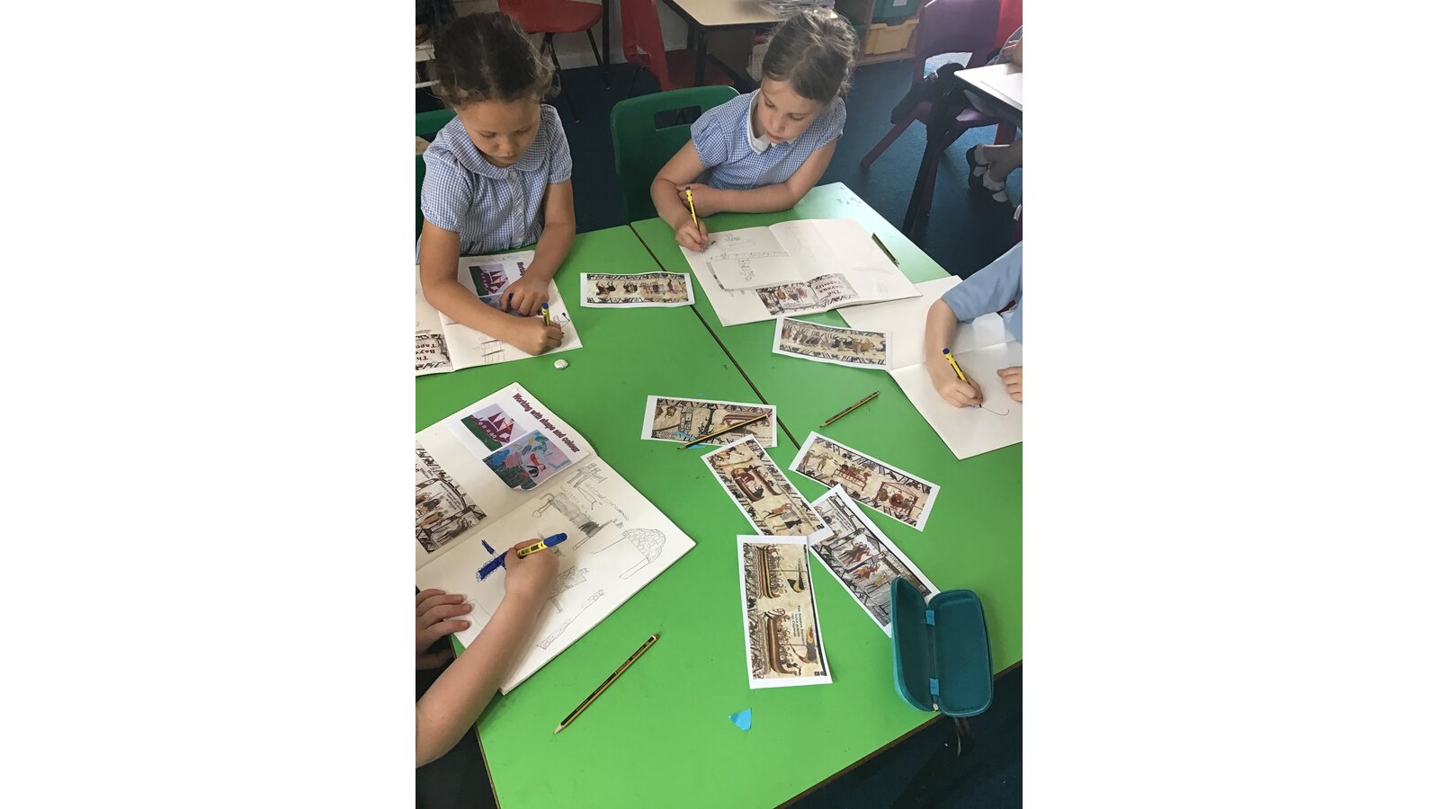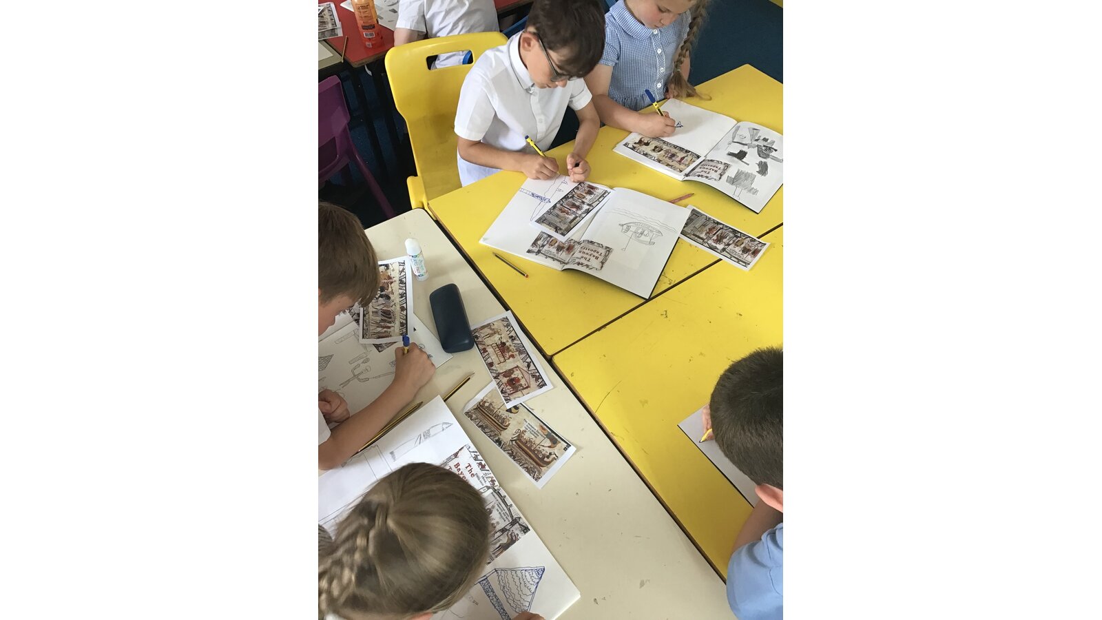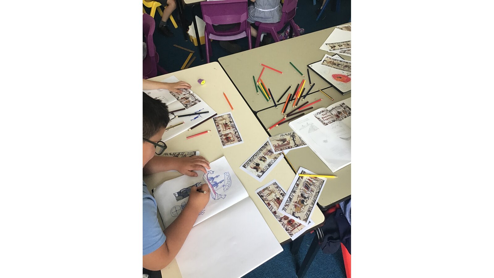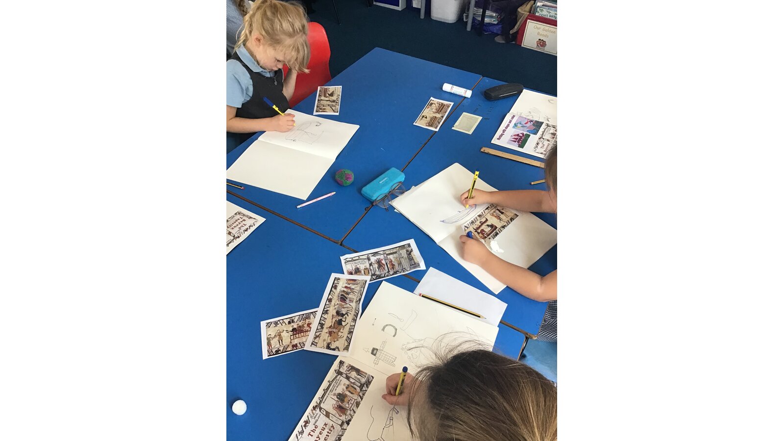 Class 2 have had a great time during art week! We have looked closely at the Bayeux Tapestry taking note of different patterns, colour, lines and shapes. We then looked at the artist Henri Matisse and his ‘cut-outs’ period. This inspired us to create our own cut out artwork based on the Bayeux Tapestry.