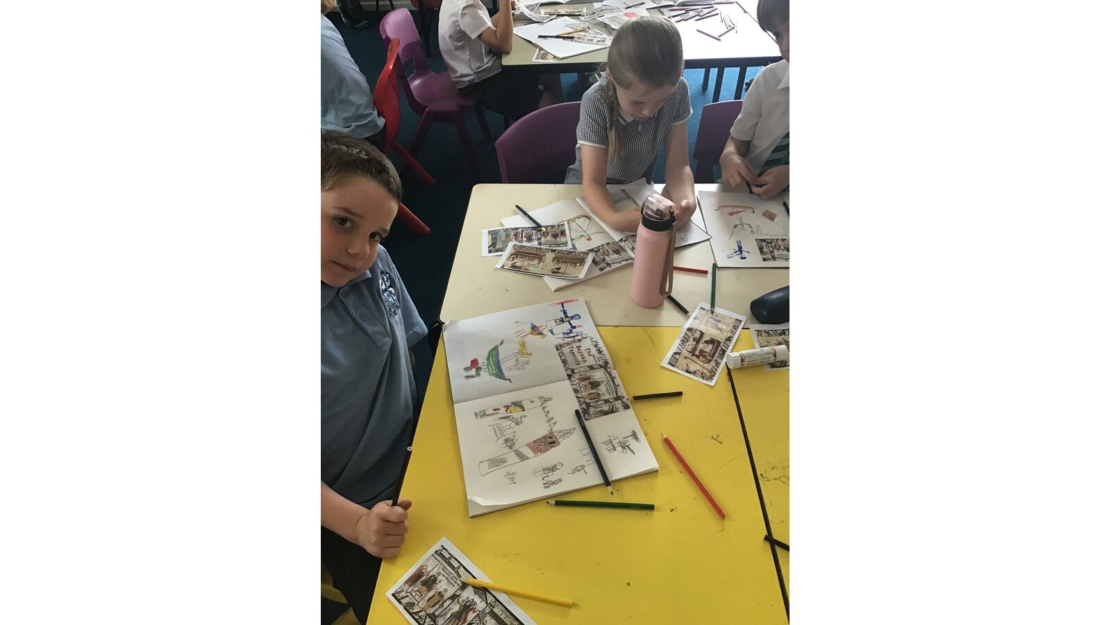 Have a sneak peak at our planning and practise pieces. We can’t wait to show you our final pieces at the art exhibition after school next Wednesday 25th June!
