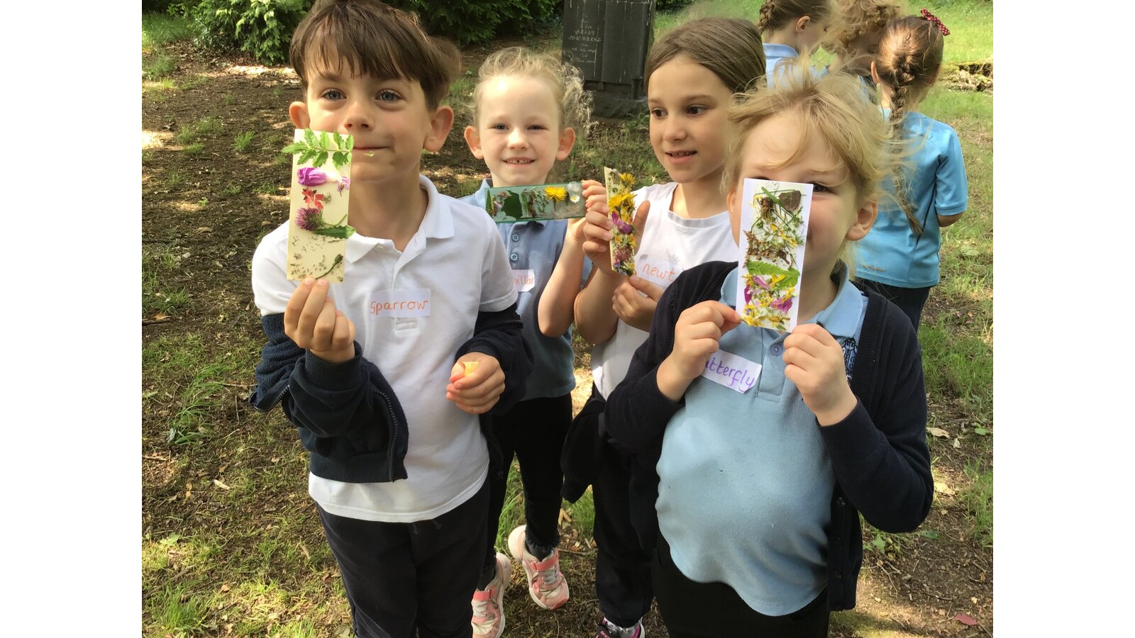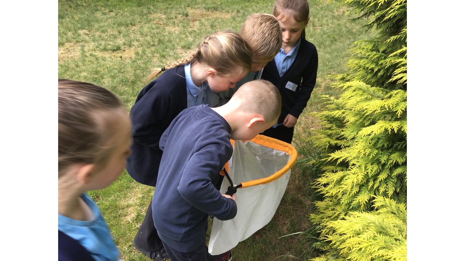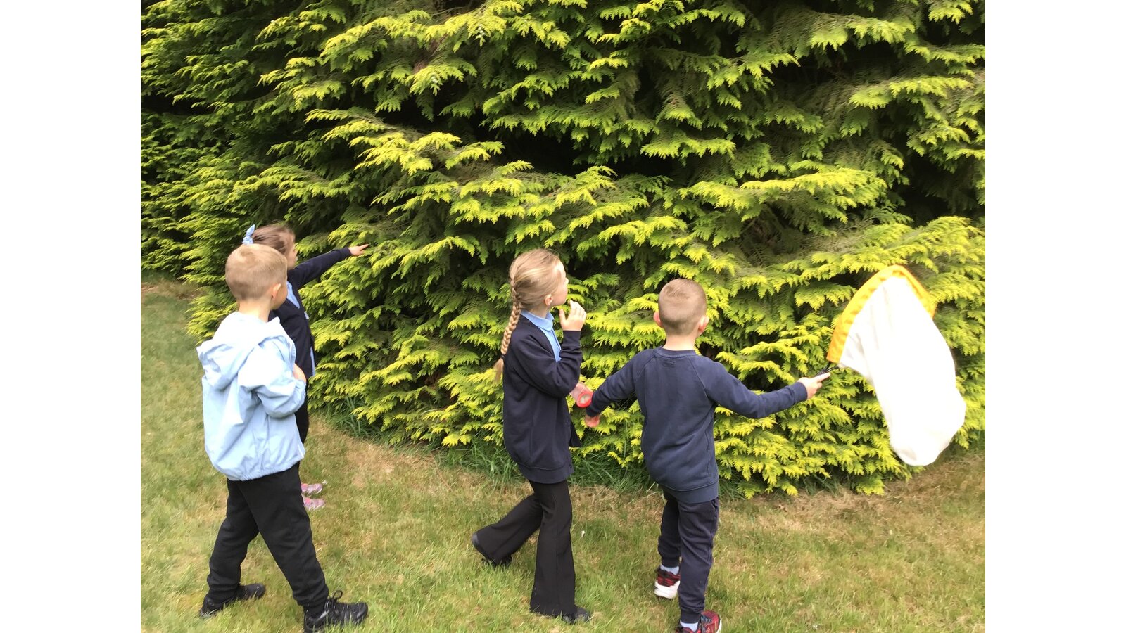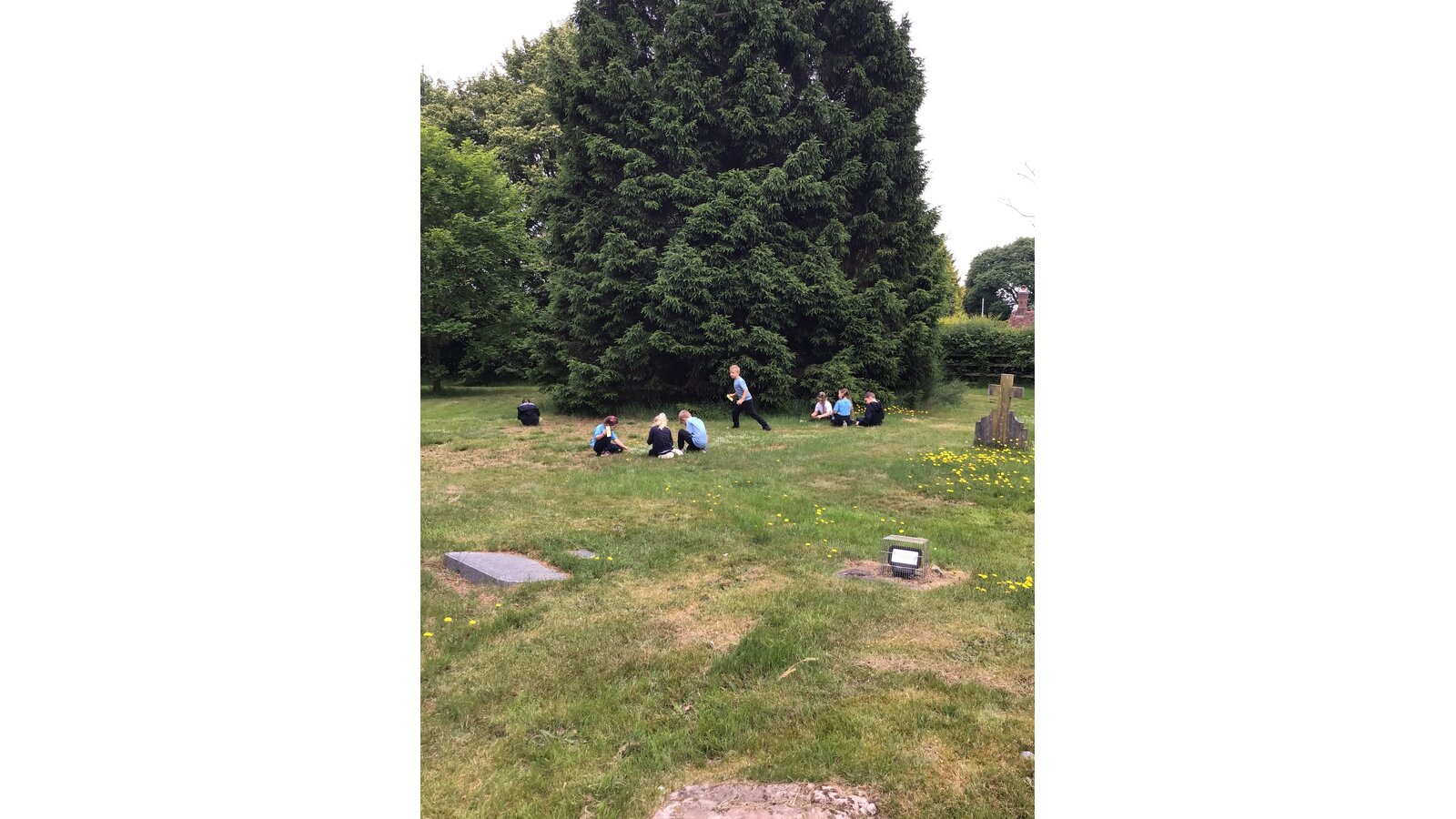 Today we went to the church yard to learn all about minibeasts and their habitats. We started the morning off learning about the different trees we could find and used a tape measure to work out how old the biggest trees were. We found one tree that was 148 years old! Next, we used the nets to sweep up bugs that were living in the long glass and bushes. After, we designed nature book marks and continued our search for minibeasts.