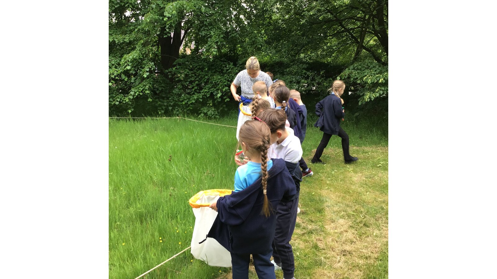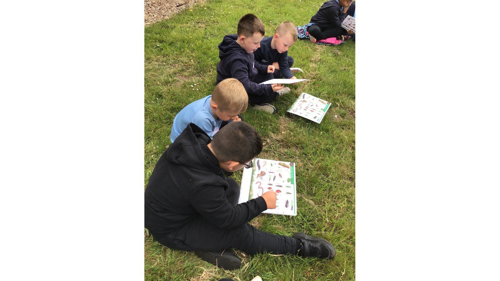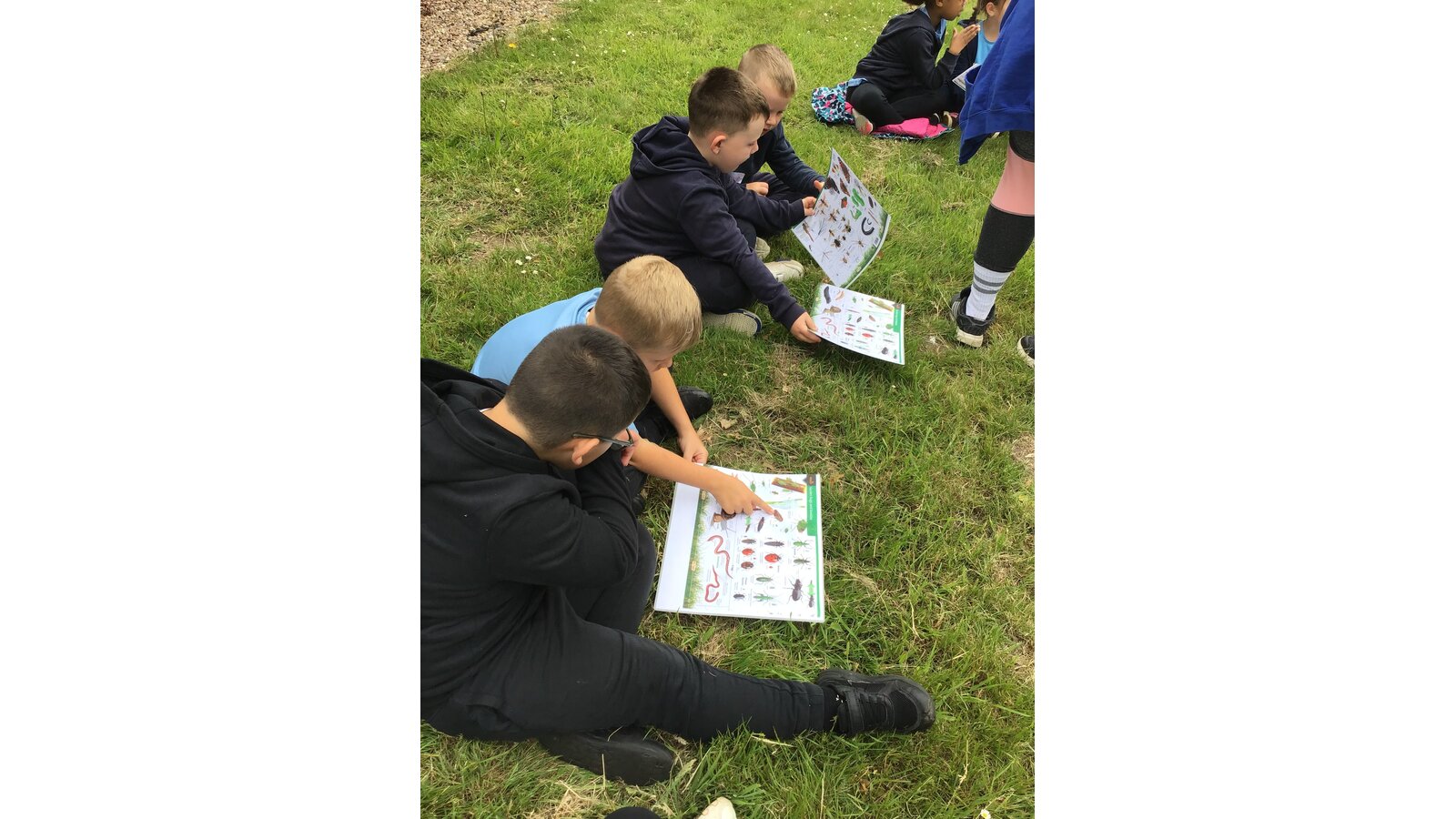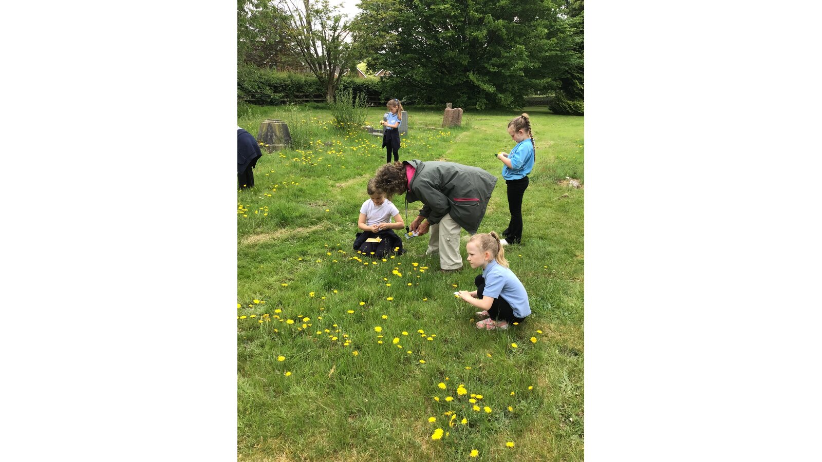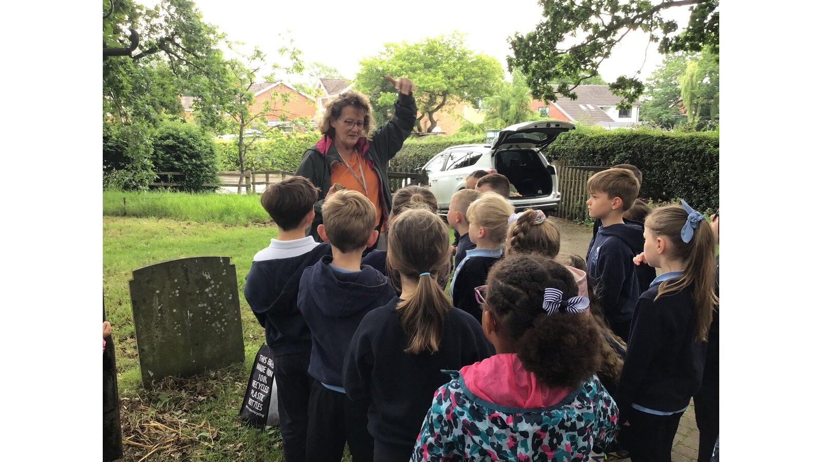 Today we went to the church yard to learn all about minibeasts and their habitats. We started the morning off learning about the different trees we could find and used a tape measure to work out how old the biggest trees were. We found one tree that was 148 years old! Next, we used the nets to sweep up bugs that were living in the long glass and bushes. After, we designed nature book marks and continued our search for minibeasts.