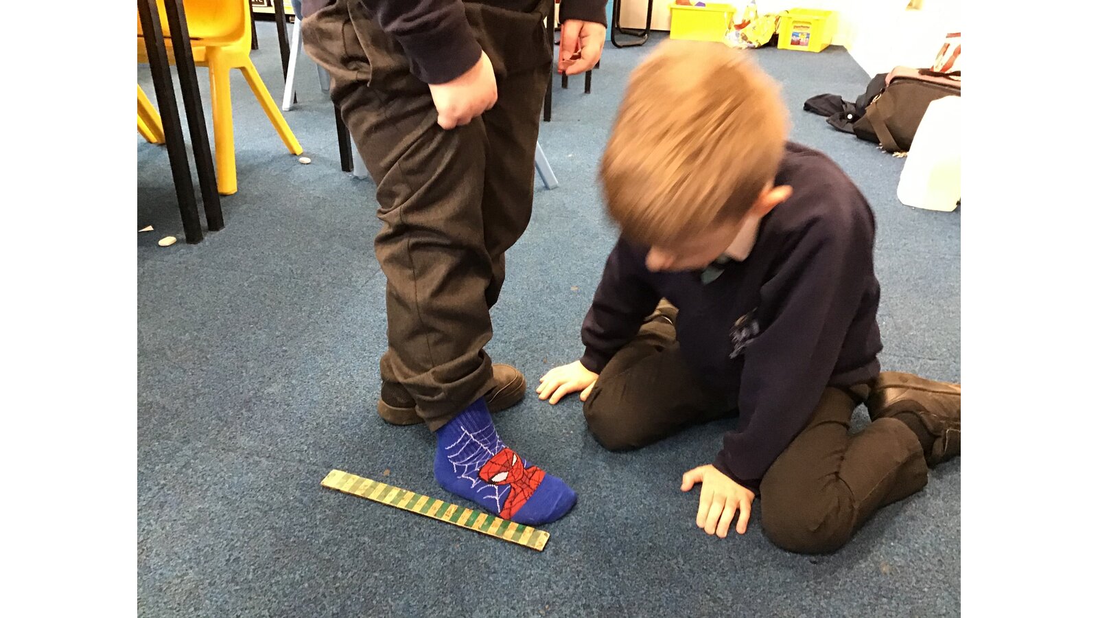 The children enjoyed going around the different classes and measuring using blocks and cm. We were surprised with the results!