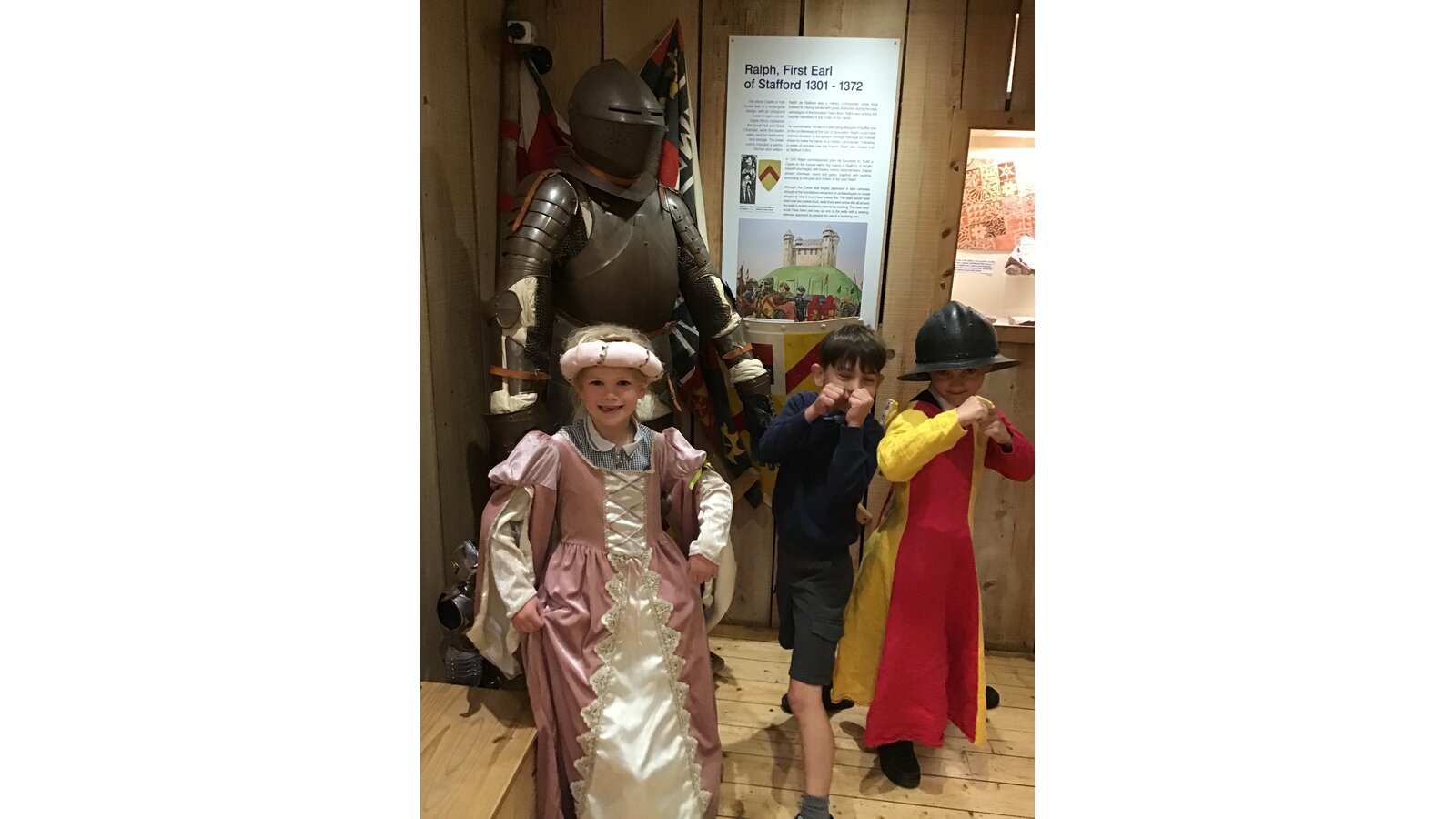 Class 2 had a fantastic trip to Stafford Castle today. We enjoyed learning lots of interesting facts about the castle including when it was built and who lived there. We learnt some new vocabulary for the features of a castle and even got to re-enact the Battle of Hastings! The children loved dressing up and holding some weapons that they would have used in battle.