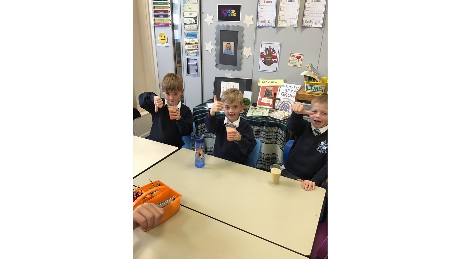 In science we are learning about the human body. The children have enjoyed labelling parts of the body, looking at baby pictures and talking about the human life cycle. In our science lesson today we investigated the question: Does the oldest child in the school have the biggest feet?