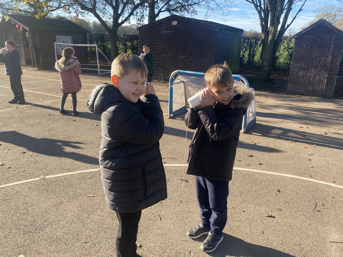 Today we made telephones with paper cups and string and then experimented with the tightness of the string to see how the sound changed. We had a lot of fun and enjoyed the investigation!