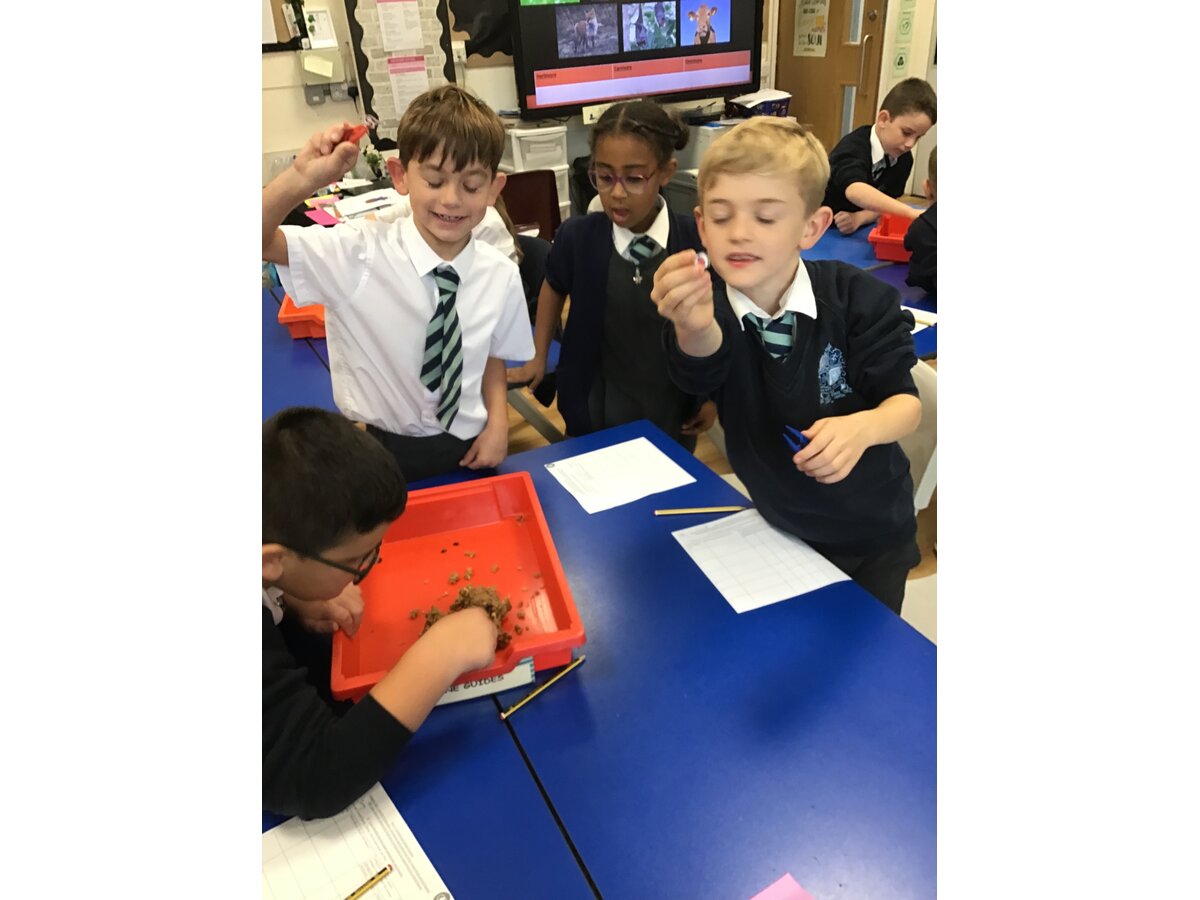 We have had lots of fun today, learning about what different animals eat. We dissected (fake!) poo and looked at what the animal had eaten, before classifying the animal as a herbivore, carnivore or an omnivore. Everyone got really involved and there were lots of correct answers!