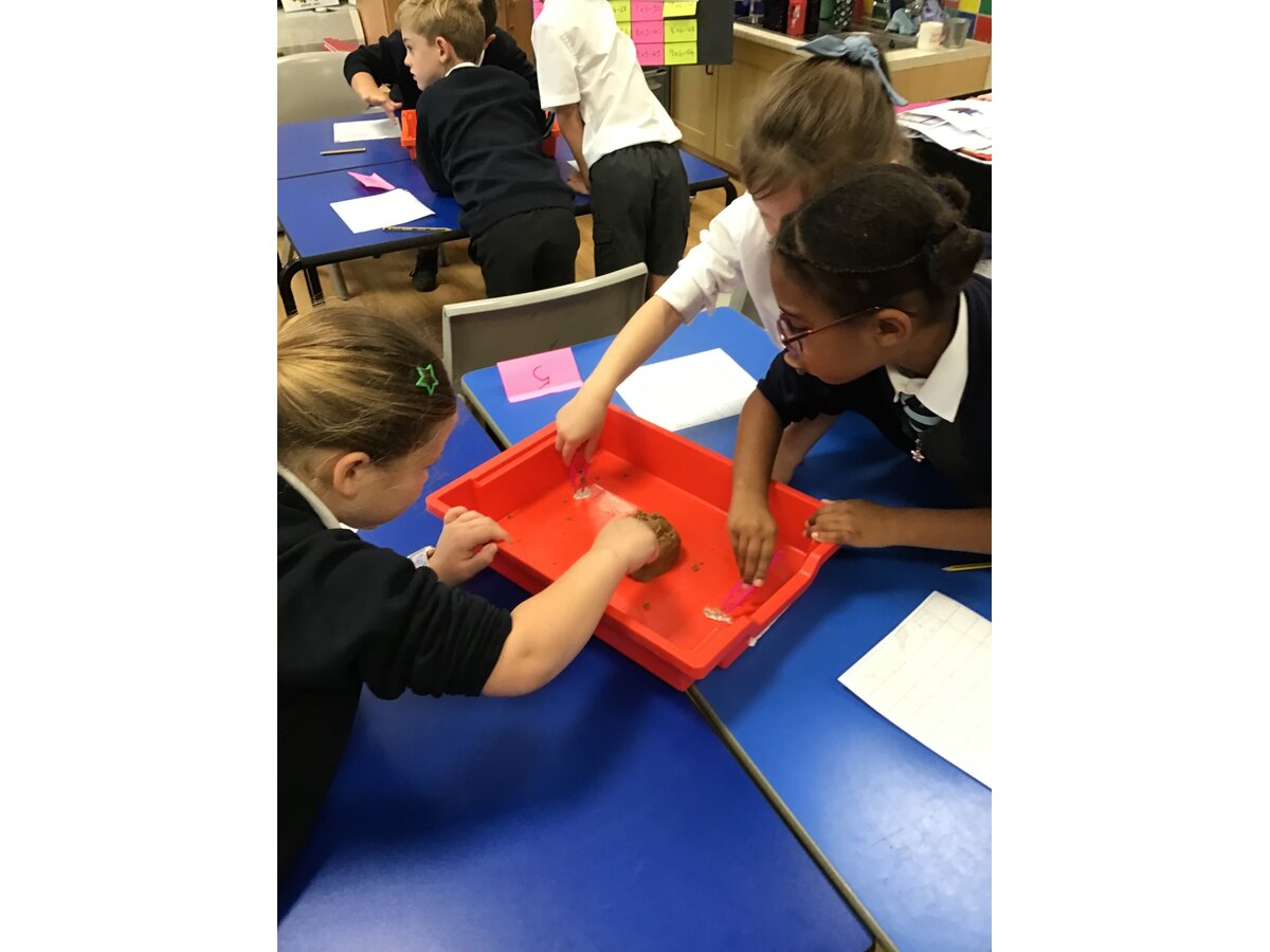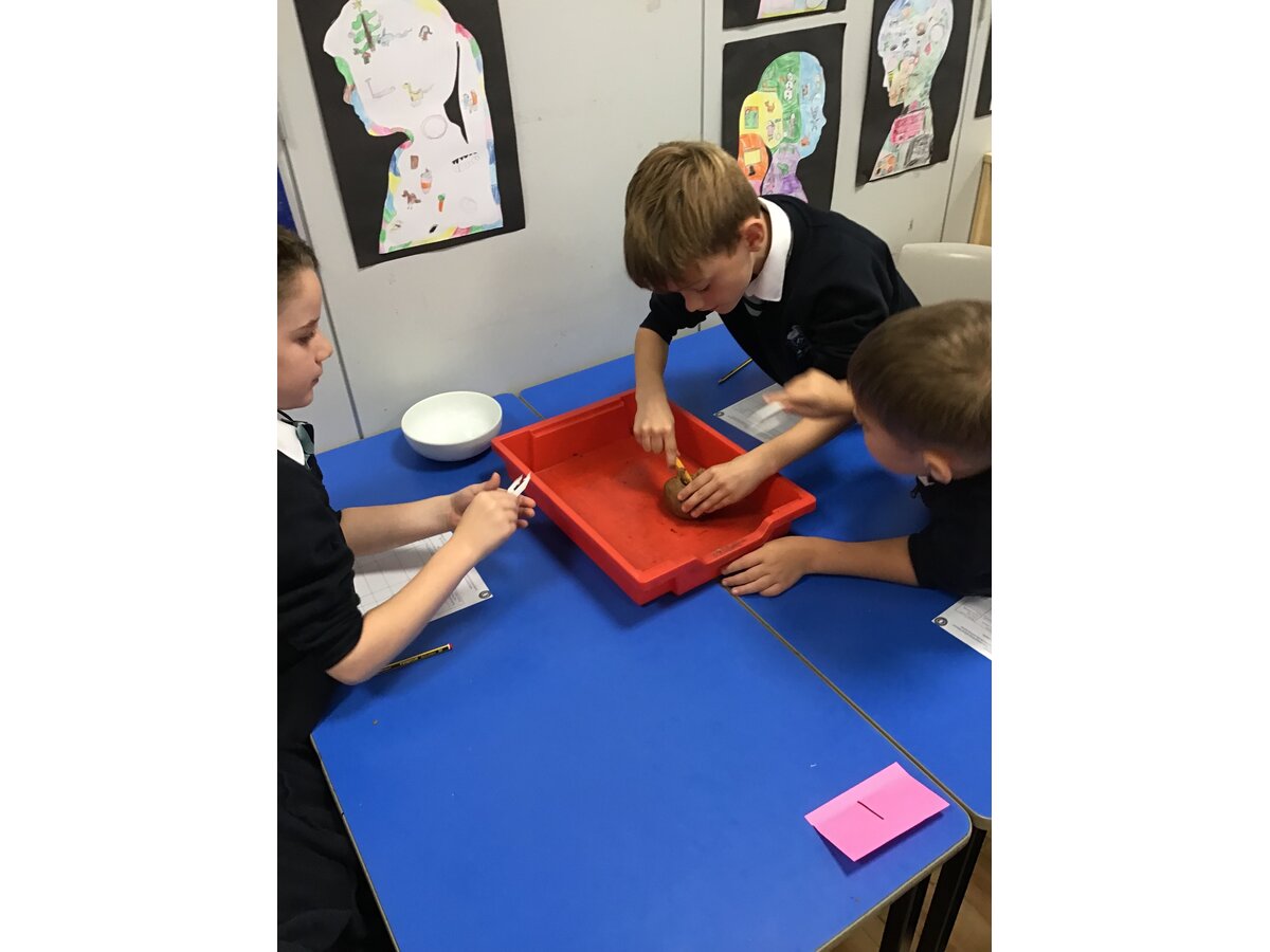 Today in Science, Year 3 and 4 carried out an experiment to see which rocks erode easily. We carried out a fair test, ensuring that when we rubbed two of the same type of rocks together, we used the same amount of force and we tested each rock for the same amount of time. We made some predictions and talked about what we found out. We had lots of fun in our Science learning!