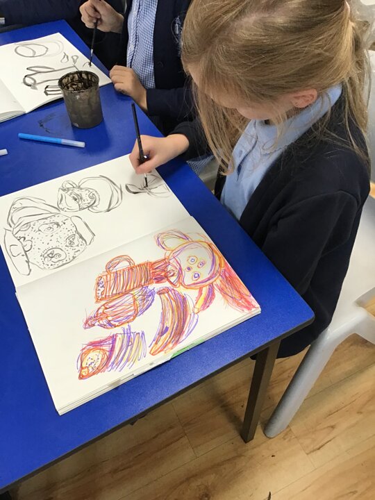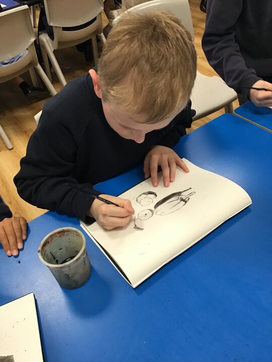 Class 3 have been trying out different sketching techniques as part of their learning about 'Still Life'.