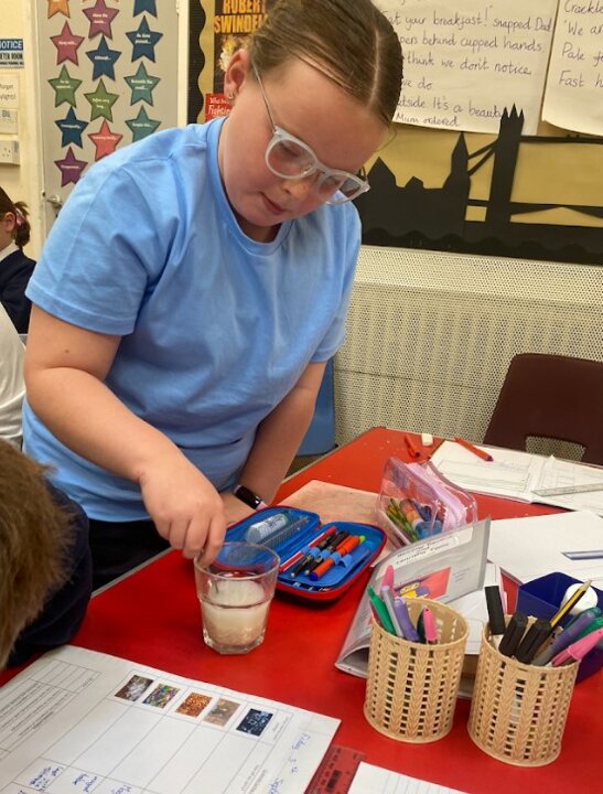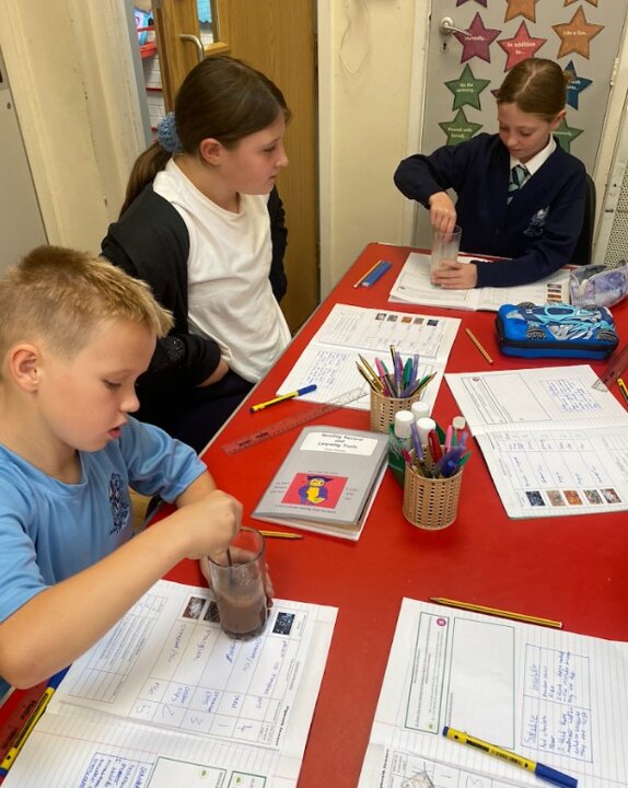 In science we have been making predictions about which materials we think would be soluble and which would be insoluble. We carried out our tests as a team and then reflected on our results.