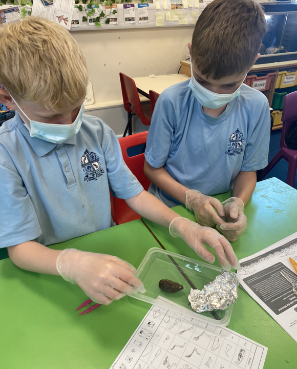 Inspired by our book topic on 'Skellig' by David Almond, Year 5 and 6 learnt how to dissect an owl pellet. We uncovered the skeletons of lots of smalls mammals, including rodents, moles and shrews; we even found a bird's skull! Barn owls are unable to chew, so have to swallow their prey whole and regurgitate the waste. Brilliant hands on learning!