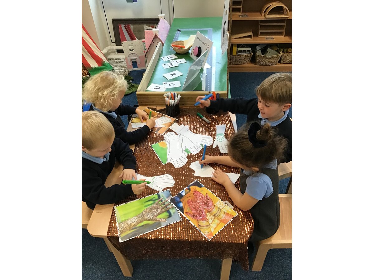 Diwali celebrations! Class 1 enjoyed a variety of activities to celebrate Diwali. We made and painted Diya lamps, made rangoli patterns, mehndi designs and sent Diwali cards!
