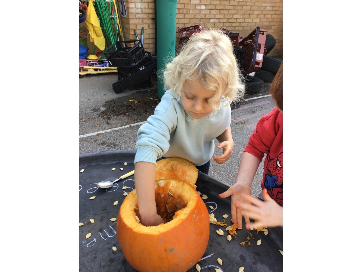 Class 1 have been enjoying all things Autumn! We have been vegetable printing, making vegetables, making dens with camp fires and cooking Autumn soups, making hedgehogs, counting groups and also talking about our emotions, bubble painting and making tracks.