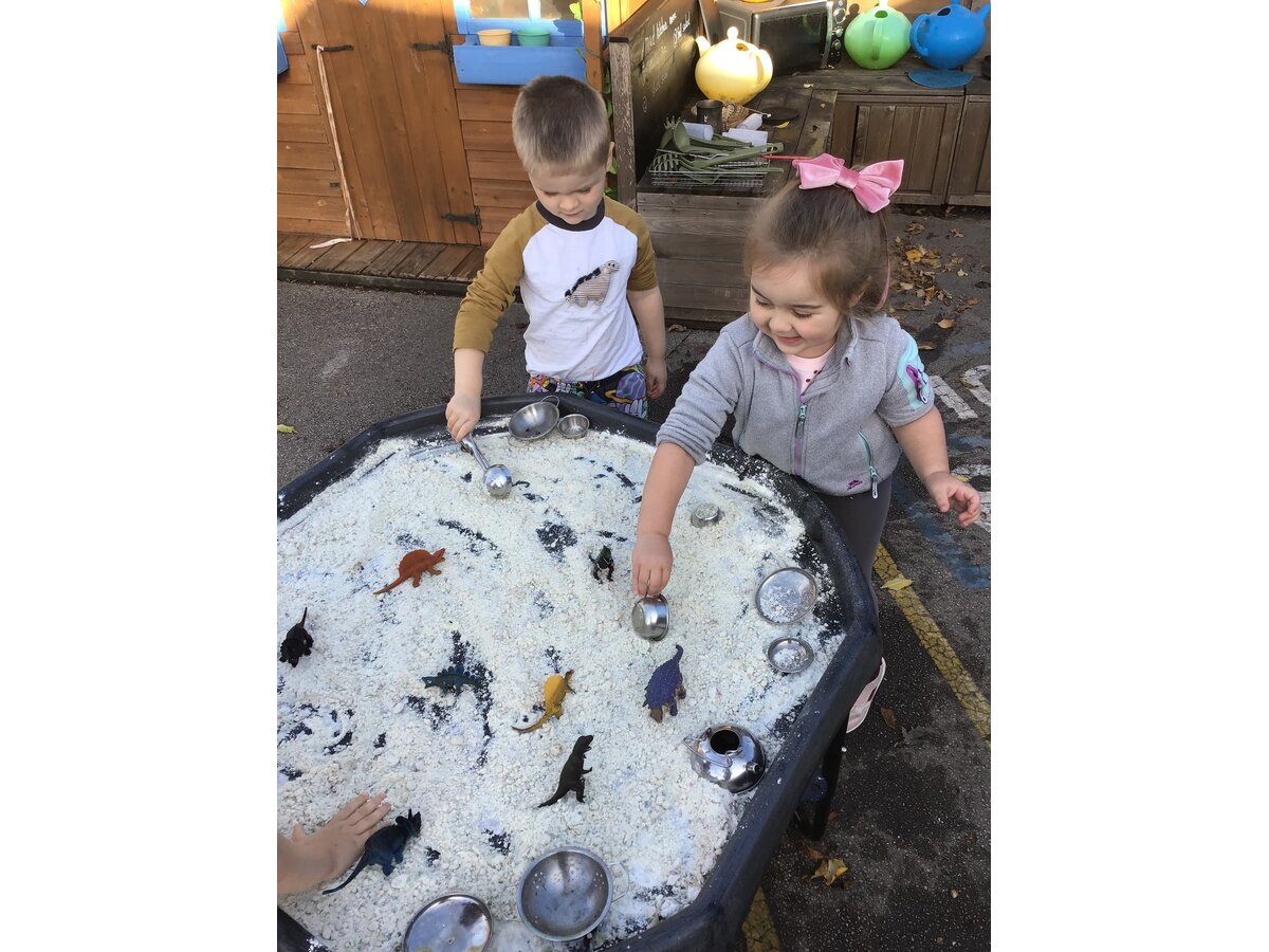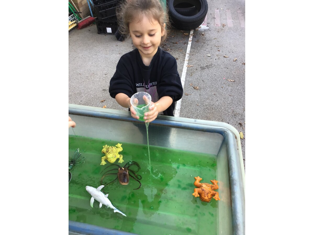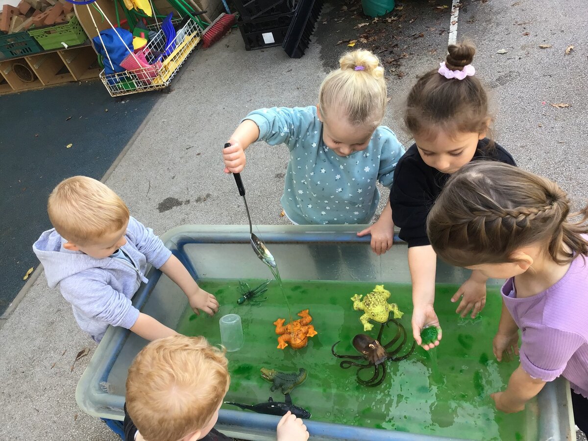 - We recognise the importance of providing our children with a stimulating learning environment. This is enabled by good quality provision and clearly organised open-ended resources, both outside and in. Whether they are using the large outdoor construction equipment to make a pirate ship or making potions in the mud kitchen your child will be developing problem solving skills, self-awareness and all the while becoming happy, confident individuals who will go on to make a positive and valuable contribution to society.