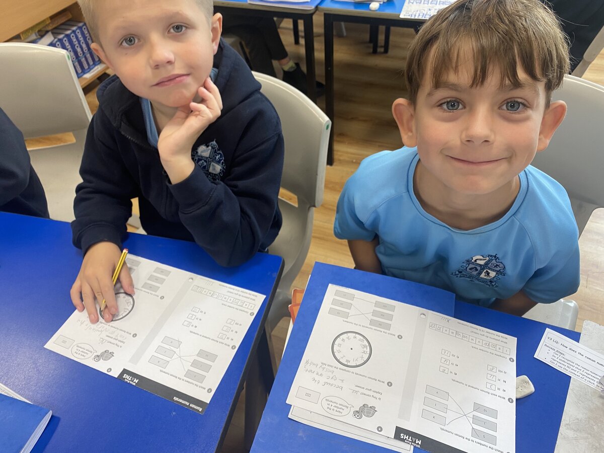 We have been learning to tell the time on analogue clocks. We are getting really good at it. Today, we played a game on the field and had to show the right times on our clocks.. It was fun!