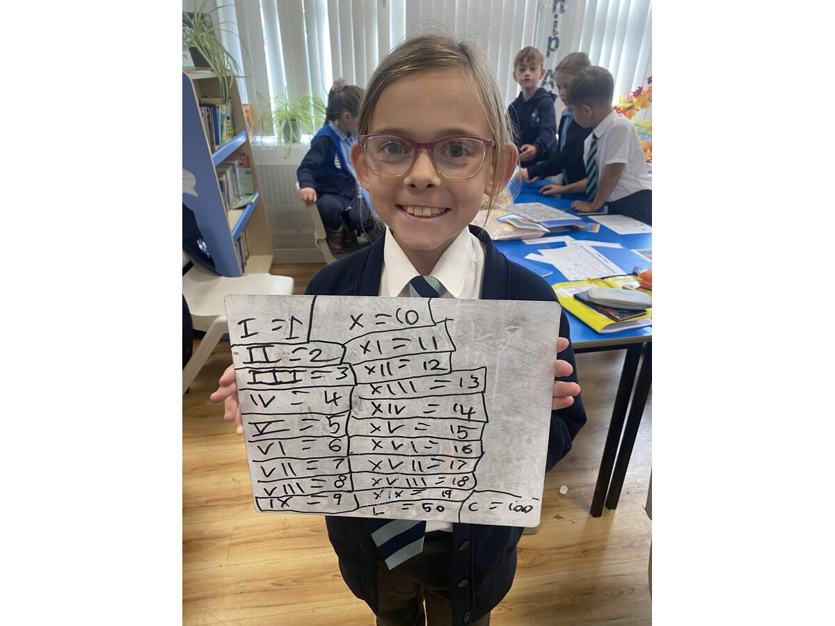 Today we have been learning all about Roman Numerals. It was lots of fun! We even learnt a song to help us remember them.